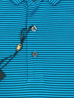 Show your true stripes in a the Jack Nicklaus Black Label Men’s Feeder Stripe Polo. The tight stripes of this polo with three button placket and open sleeves create a corporate look that can be worn alone or paired with a jacket for meetings. Then move to the golf course and clubhouse with ease as the moisture wicking and UPF protection will make sure you stay comfortable and protected. Tag free means no annoyances as you play your best on the toughest greens.