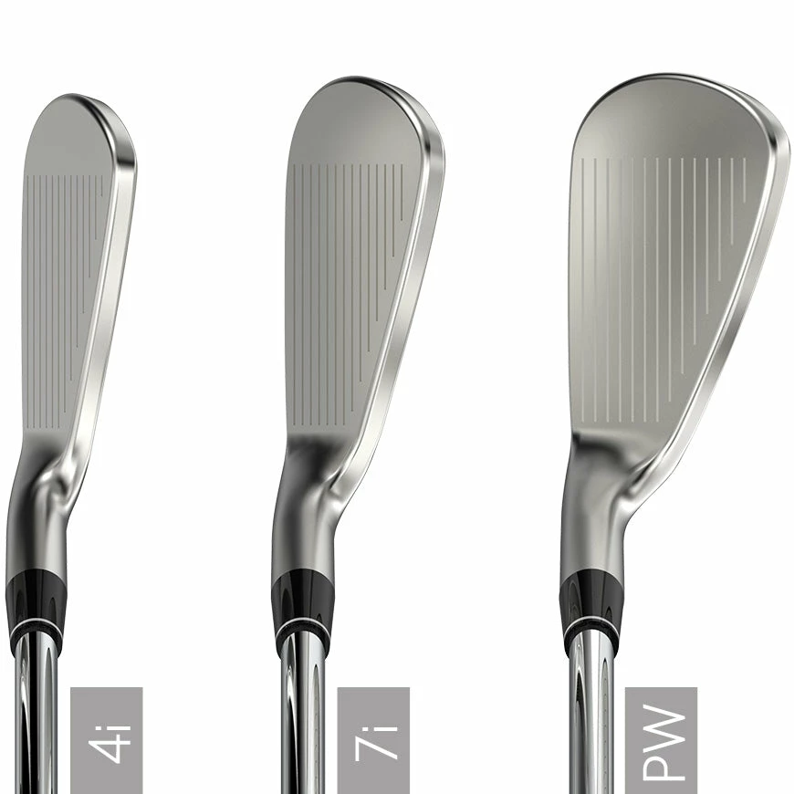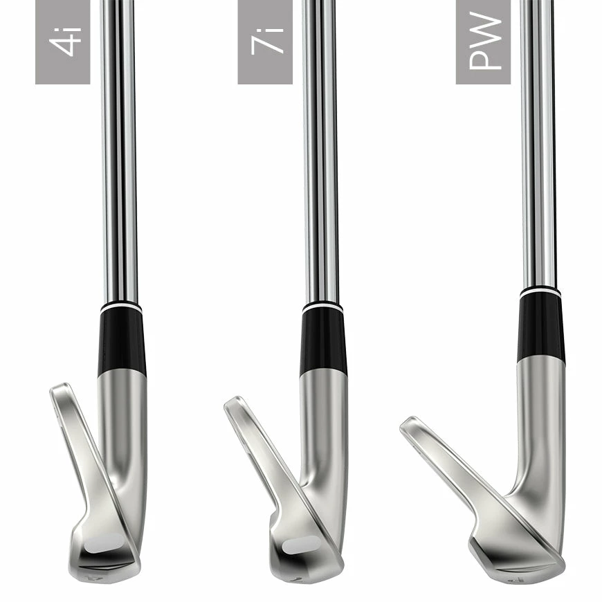 Grooves in the 8i through PW are sharper, narrower, and deeper for more spin and stopping power on approach shots into the green.