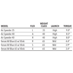 No Upcharge Custom Shaft Specs: